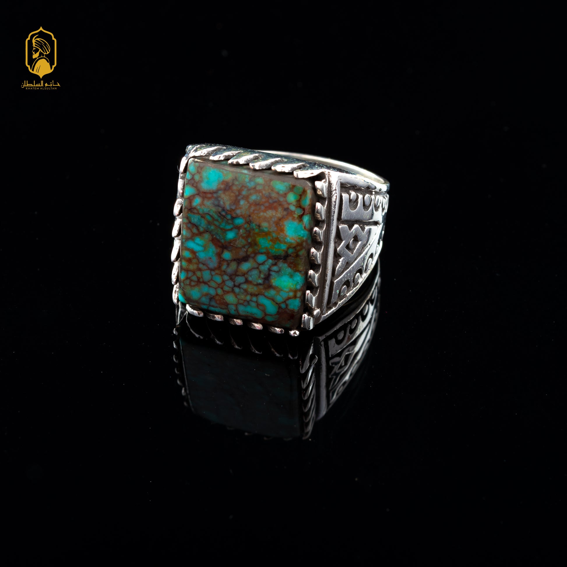 خاتم عين الفيروز هو تجسيد للأصالة والفخامة، حيث ينفرد فضة مع حجر الفيروز الطبيعي المميز بلمساته الساحرة، ليمنحك رؤية تنبض بالقوة والأناقة.