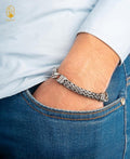 سوار "آيرون برايد" تحفة فنية، يمزج بين القوة والرقي في تصميم منسوج خالد. مصنوع من الفضة الإسترلينية الفاخرة عيار 925، ويرمز نمطه المضفر المعقد إلى المرونة والأناقة الراقية. مثالي لأي مناسبة، هذا السوار قطعة مميزة للرجل العصري.
